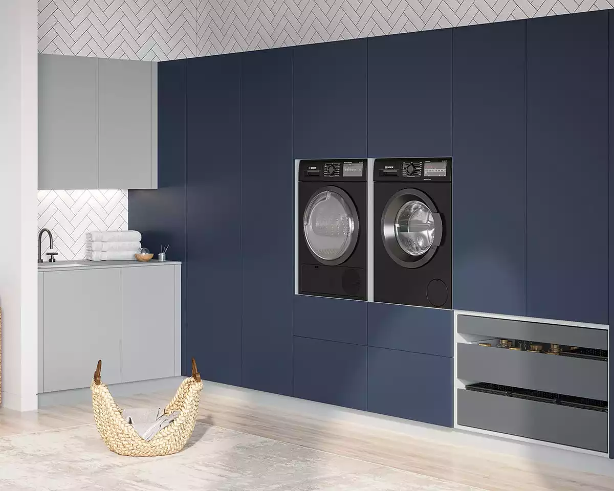 Een bijkeuken moet elke dag eenvoudig werken. Daarom zorgen wij niet alleen voor een mooi ontwerp, maar ook voor de juiste indeling en plaatsing. Denk aan apparaten op ergonomische hoogte, handige wasmandsystemen of een kast die precies groot genoeg is voor stofzuiger en dweil.